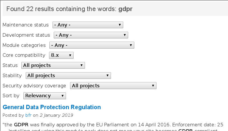 Dernière version : 8.x-1.0-alpha5 le 31/10/2018